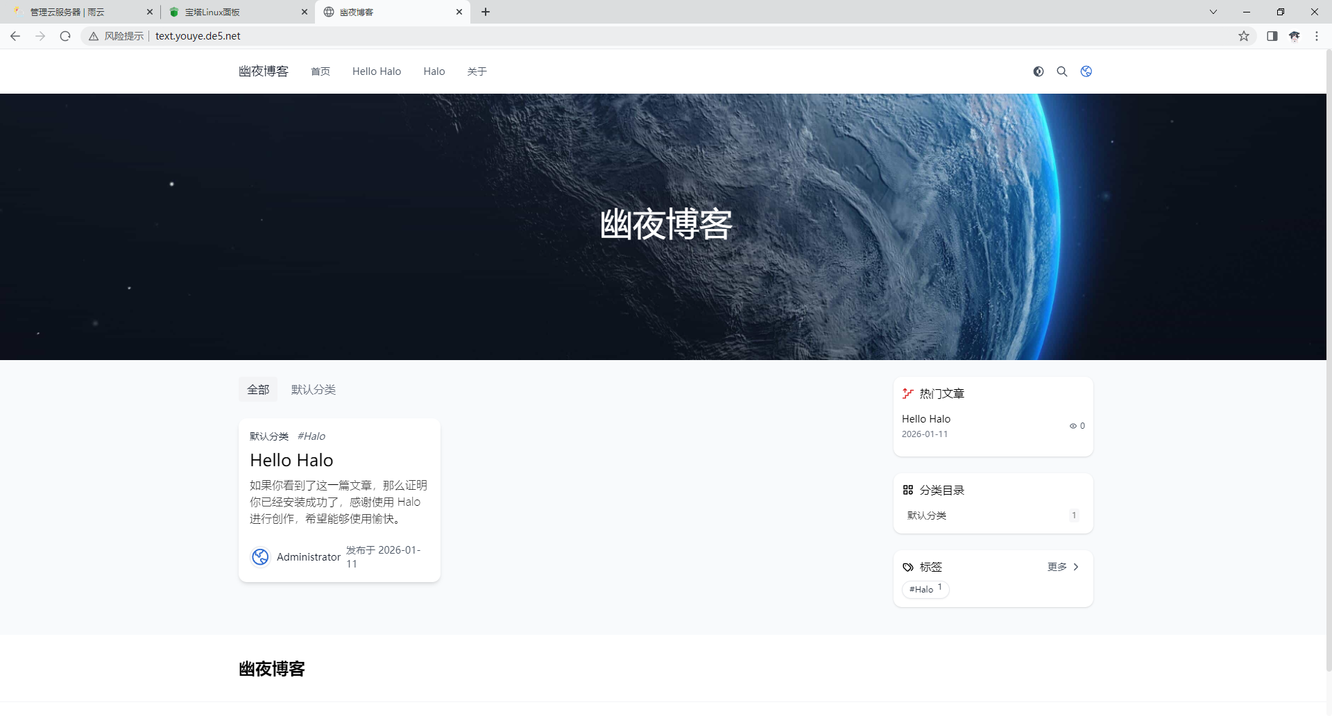 进入服务器管理页面,点击左上“宝塔管理面板”进入宝塔