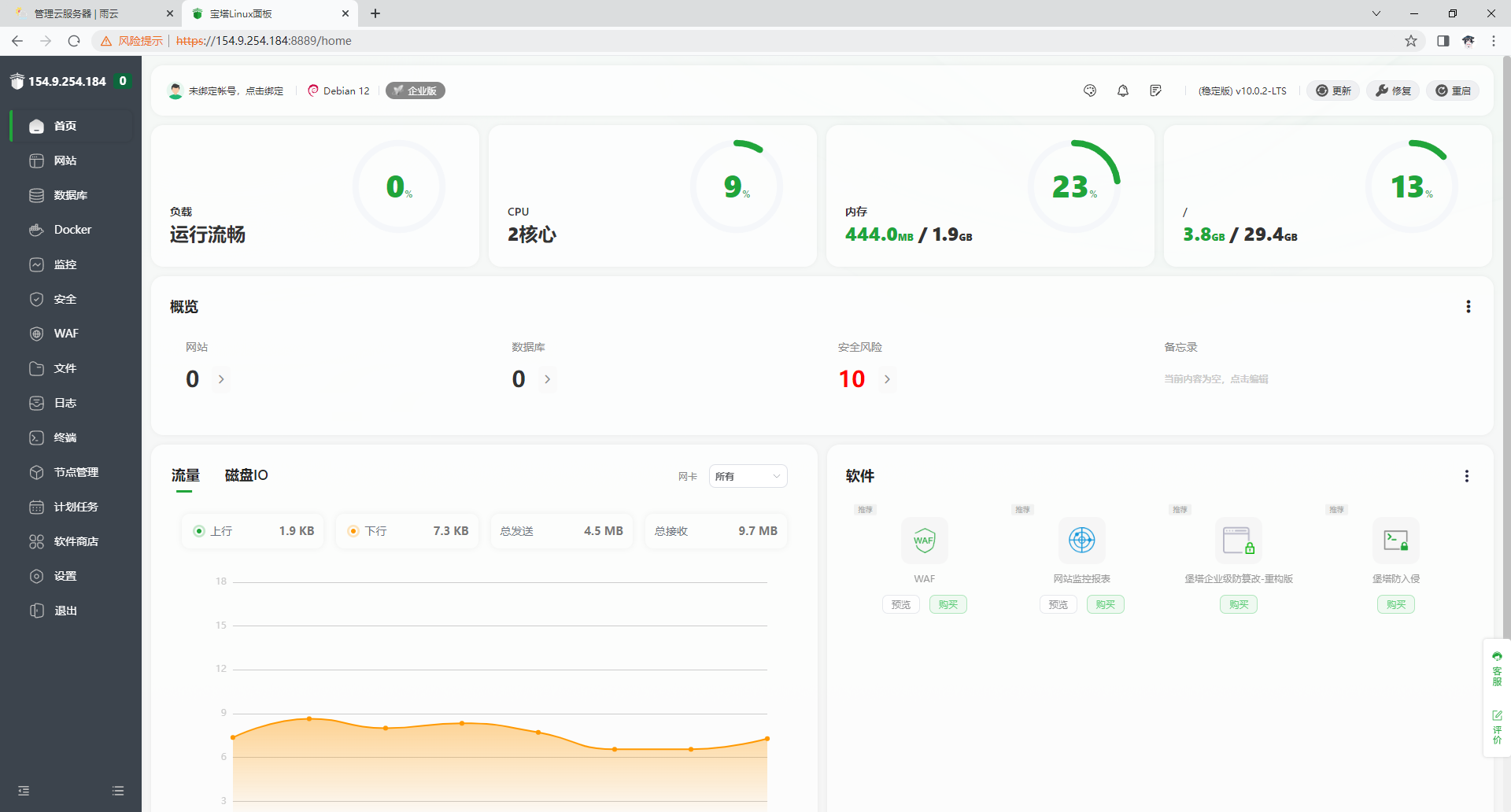 进入宝塔,您看到的是这样的界面,我这个已经安装好了Nginx(自己手动安装宝塔的需要手动安装插件)