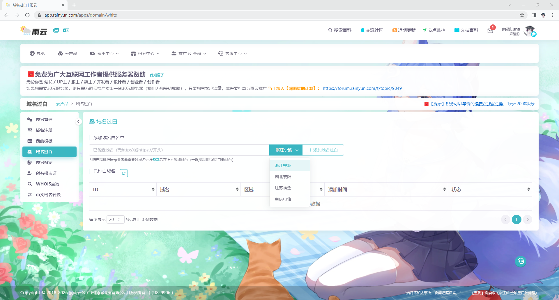 红色区域为海外服务器,不需要ICP备案和雨云域名过白