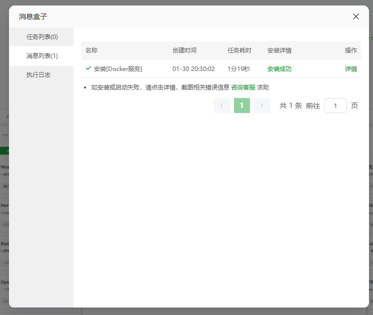 点击安装,显示运行中后即安装完成
