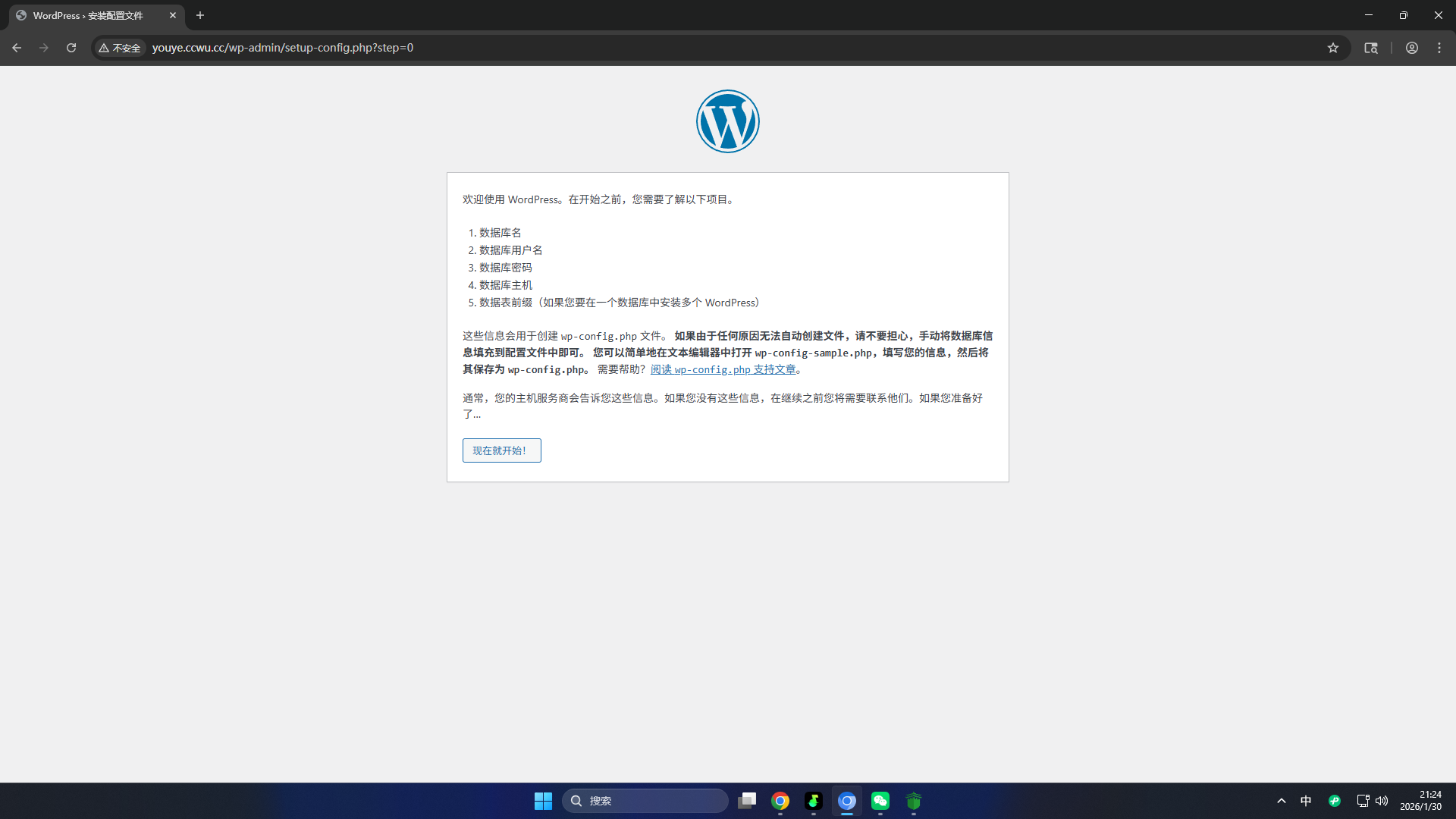 看到成功页面即代表安装完成,您就可以搭建您的博客了