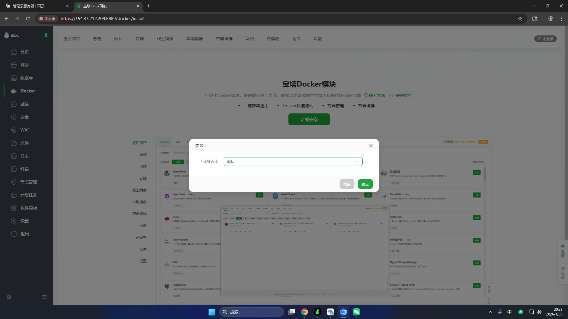 点击左侧Docker模块,然后根据提示安装