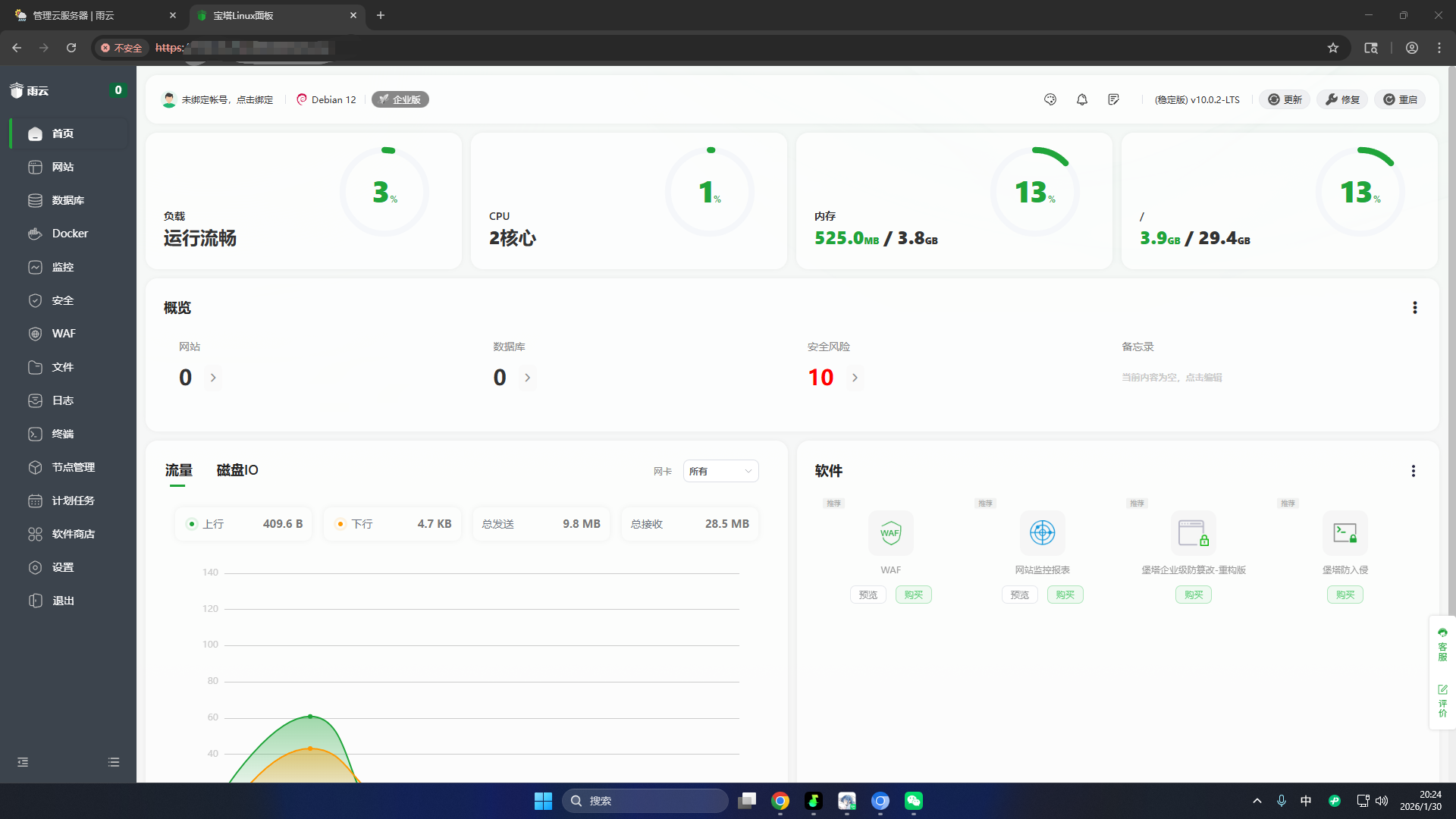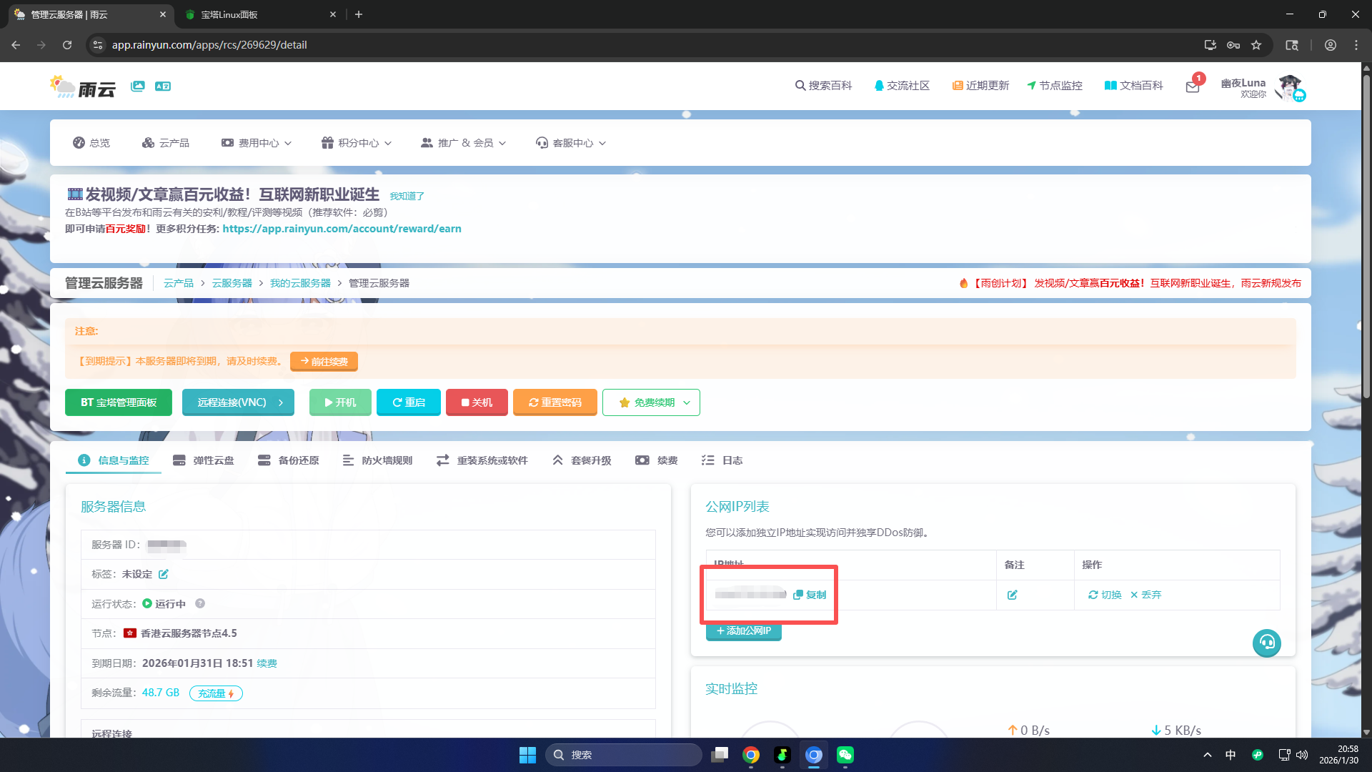 那么,还是拿出我们的老朋友雨云和宝塔面板啊~