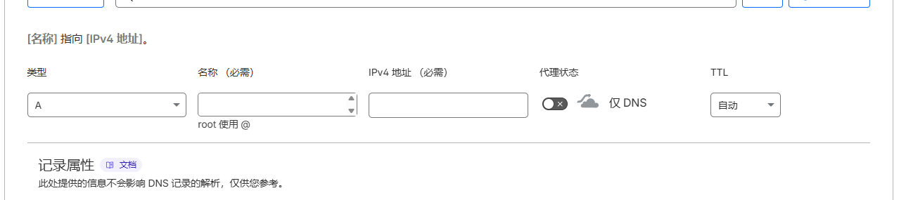 名称:你主域名前面的(如XXX.example.com)就要填前面的XXX,否则就是@