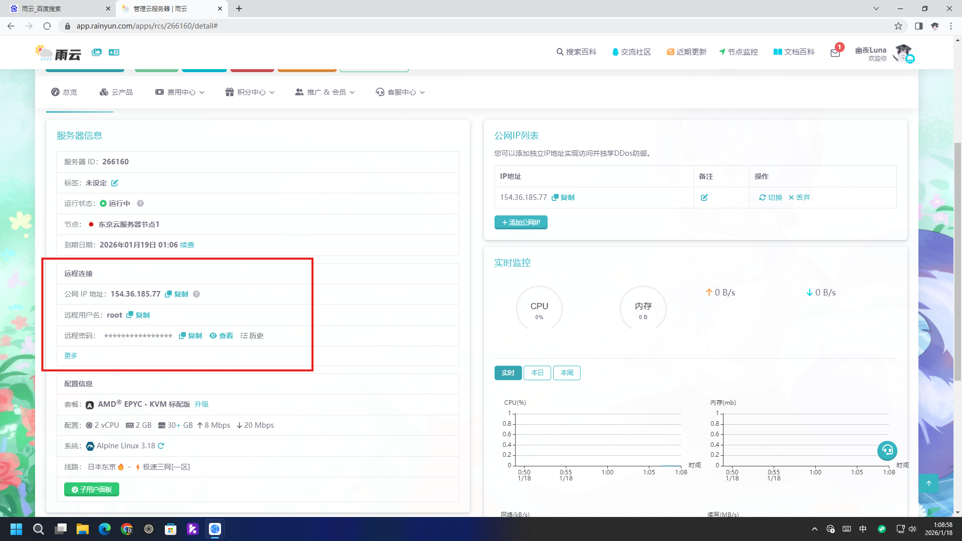 注意:本文中演示的服务器为试用服务器,用完后就过期了!