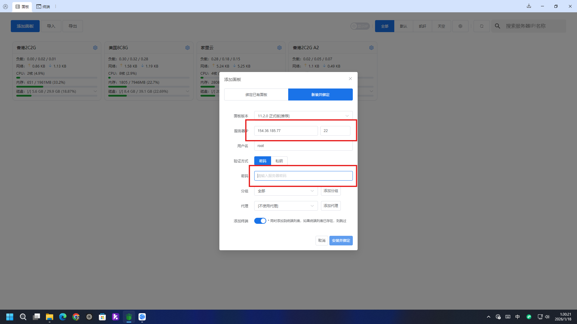打开宝塔多机管理主界面,点击右上角“添加面板”