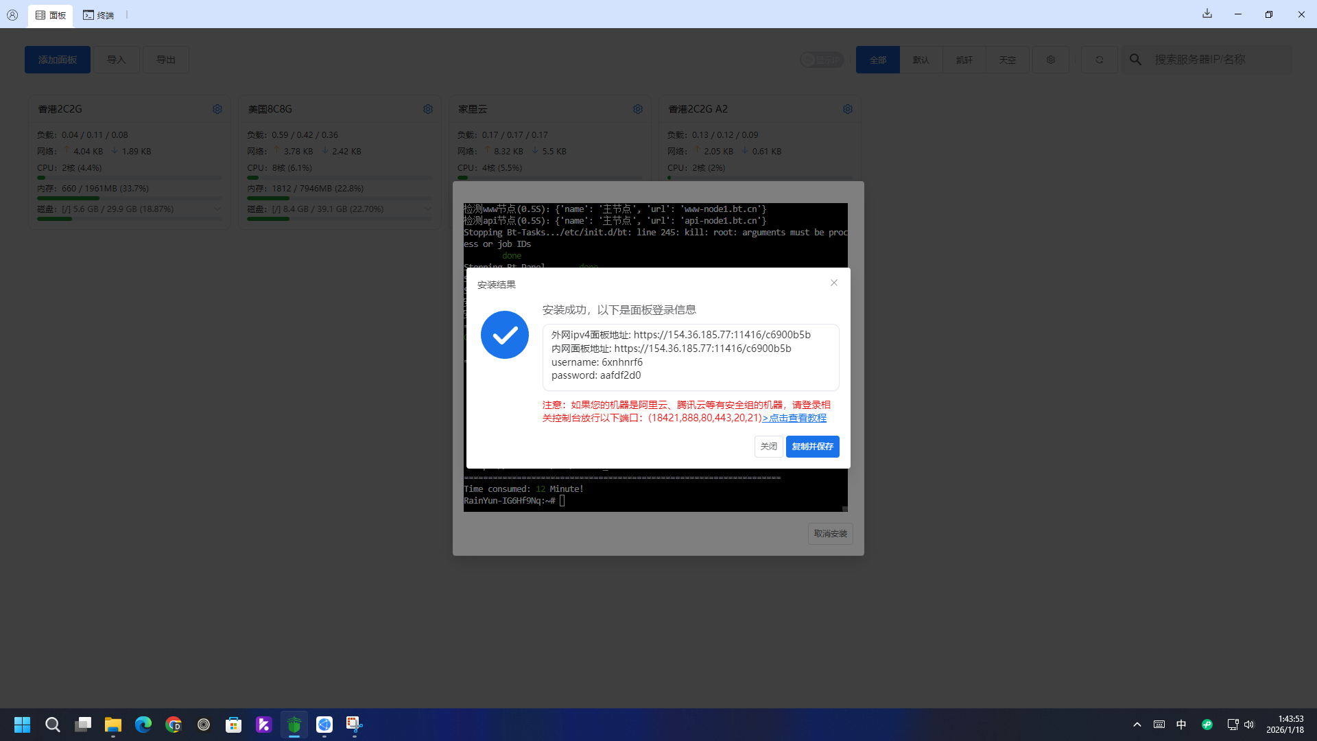 宝塔多机管理安装的直接点击首页的服务器卡片(无需密码)